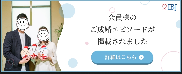 株式会社IBJエリアページに成婚エピソードが掲載されました。 【20代女性 公務員】 ブログを隅々まで拝見し信頼できる方だなと感じ、実際にお会いしてお人柄に触れ、岡さんにお世話になりたいと決めました。 <全文はこちらからどうぞ!> ⇒婚約者にお見合いの申込みをしたのは、コロナで体調を崩す前日だったので、タイミングがズレていれば申し込んでいなかったかもしれません。